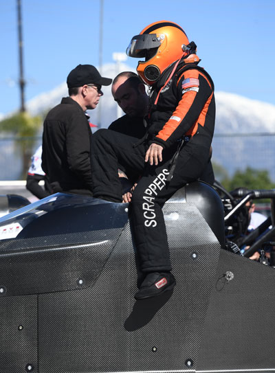 Beneath an easy-going, friendly exterior, the Northern California-based Top Fuel pilot admits he’s very demanding and expects success from everyone in his orbit, including his family. Over the winter, he hired the sport’s most successful nitro tuner, Alan Johnson and his protégé, Brian Husen, to bring their magic to the Scrappers Racing team.