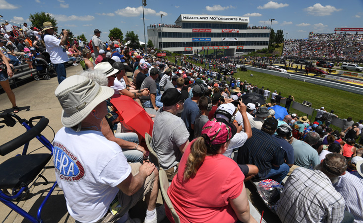 Bright sunshine and the sweet smell of nitromethane and burning rubber helped attract a big crowd to Heartland Motorsports Park for Saturday's qualifying and elimination runs at the Menards NHRA Heartland Nationals presented by Minties.