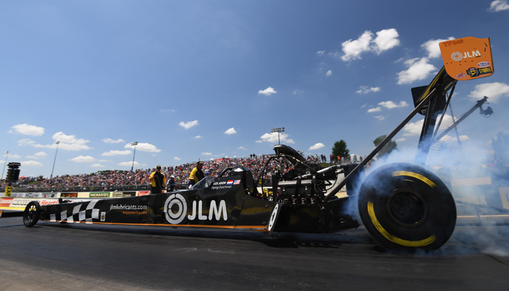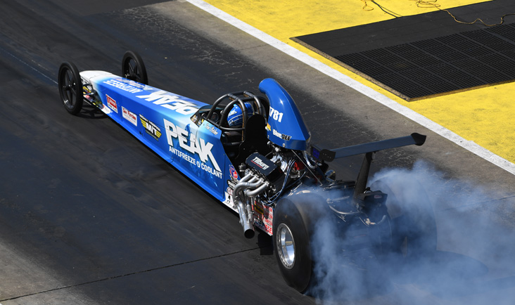 Dan Fletcher, who has 104 national event wins to his credit including the 2010 Topeka Stock title, made it through the first two rounds of eliminations with his Peak-backed Super Comp dragster.