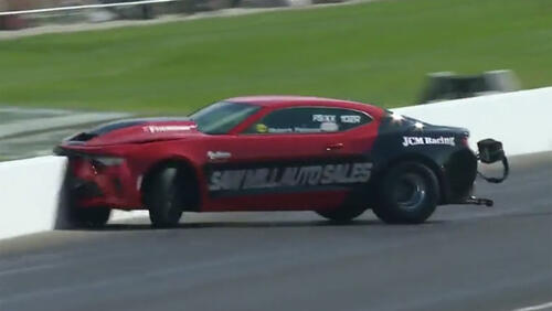 During the first round of NHRA SAMTech.edu Factory Stock Showdown eliminations at the Chevrolet Performance U.S. Nationals in, Factory Stock Showdown driver Robert Falcone of Pleasant Valley, N.Y., experienced an on-track incident when his 2019 Camaro made a move toward the centerline and then made contact with the guardwall.