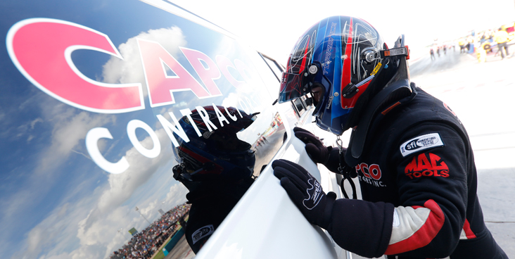 Fans on TV may have seen Torrence go through a very particular ritual before each run. Once his helmet is on and buckled, he’ll walk up to the smoked rear-side window of his crew vehicle and stare at his own reflection.