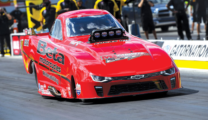 The team also was buoyed by the pre-crash signing of Beta Motorcycles as a new sponsor for the 2020 and 2021 seasons. Beta produces motorcycles in Italy but ships them in the U.S. through a distribution center in the Gordons’ Paso Robles, Calif., hometown. Tim Pilg, the head of Beta USA, had taken note of the success of his neighbors and, seeing the prolific TV coverage, thought that NHRA might be a way to build better brand awareness for Beta.