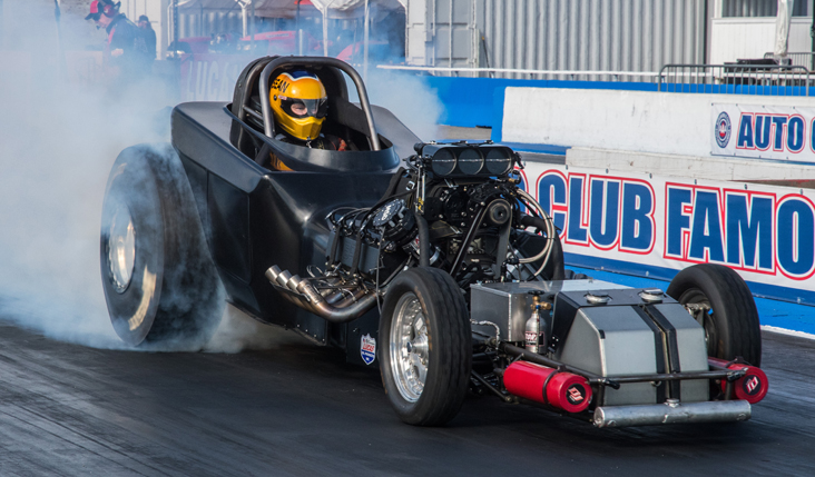 Second-generation racer Thais Flournoy in the family's Nostalgia Eliminator 1 altered.
