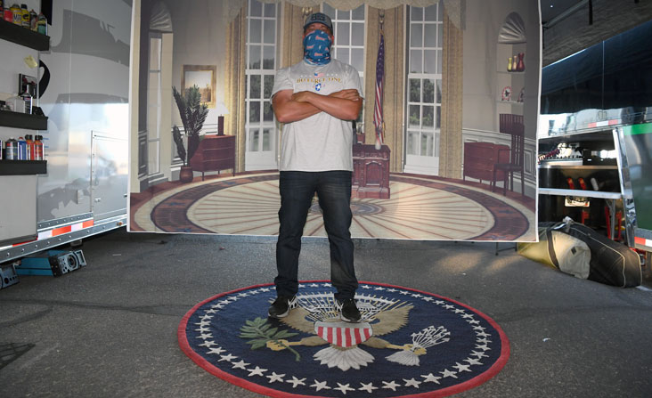 The team also has an interesting backdrop in their pit area to further enhance the mood: the Oval Office.