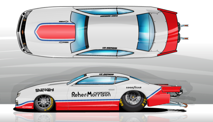 Chris McGaha and his Harlow Sammons racing team will run the Reher-Morrison wrap this weekend at the AAA Fall Nationals at the Texas Motorplex in honor of the late four-time NHRA Pro Stock world champion Lee Shepherd.