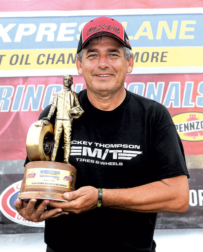 “It was a great year; we were just so blessed. We had our fair share of luck and, believe me, you need it to win championships, and you need good people, which I definitely had. I want to thank Mickey Thompson Tires, A-1 Performance, Federal-Mogul, Fel-Pro, Rolla Competition Engines, Stanfield Racing, Elite Motorsports, Hayden Wheels, Total Seal, Just-N-Time, Lucas Oil, and Haase Race Cars, and the people who have been a constant help throughout my career: Marv Ripes, Joe Martino, Chuck Haase, Kevin Duet, Barbara Noto, Kelly and Mark Jones, Kirk Bienvenu, Paul Kimble, and my crew chiefs Greg Schenck and Jimmy Dunn, and also my family: Jennifer, Danielle, and Dominique, and my wife, Cathy. I would also like to dedicate this championship to JoJo Sherrill and Tippy Mistric.”