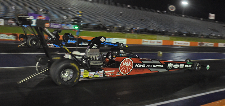 Meyer took out Buddy Domingue in the first round of Top Alcohol Dragster when she ran him down with a winning elapsed time of 5.318 seconds to his 5.387-second pass. Her run was the quickest pass of the first round and set up semifinal race with No. 4 qualifier James Stevens. In the semis Meyer was nearly perfect off the starting line with a .006 reaction time and combined that with the quickest run of eliminations, a 5.242-second pass. In the final round she avenged a first-round upset loss by her sister Rachel to Dean Dubbin outrunning the racer from Little Falls, Minnesota to the victory. Her winning time of 5.198 seconds was the quickest of eliminations.