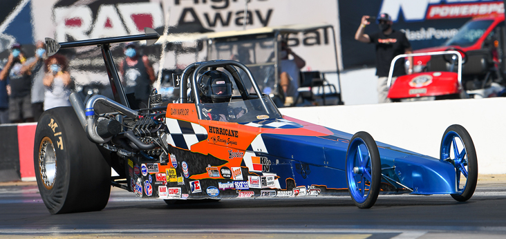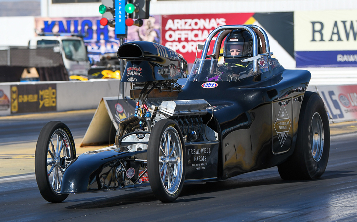 Jenny Treadwell, Mount Plymouth, Fla., '23 Ford, E/EA, 8.912, 117.38 def. Glen Treadwell, Sorrento, Fla., '19 dragster, E/ED, 9.096, 108.00.