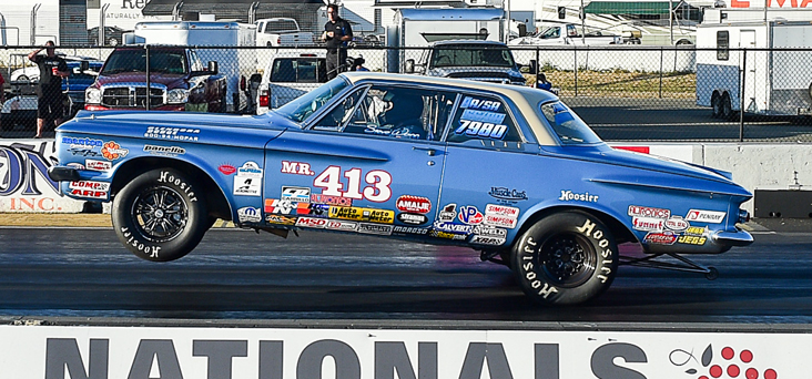 John McKoane, Clovis, Calif., '63 Corvette, 9.898, 163.81 def. Mike Coltrin, Boise, Idaho, '18 Ray Miller, 9.880, 159.85.