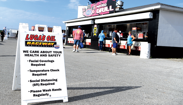 The NHRA task worked with state and local governments and began sharing best practices among all sanctioning bodies, including NASCAR, IndyCar, IMSA, USAC, and SCCA, to develop the national event guidelines that included the mandatory use of temperature checks and face masks for all in attendance, hand sanitizers, required social distancing, and increased cleaning and sanitizing of bathrooms and commonly touched surfaces.