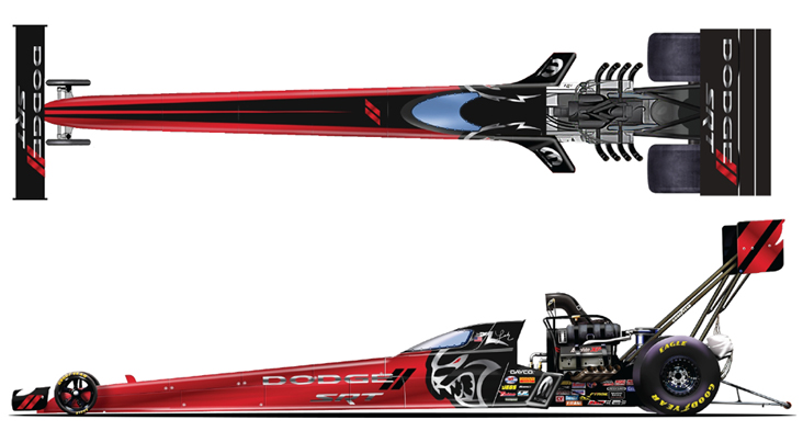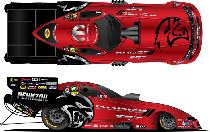 The Mopar Dodge//SRT Funny Car of Matt Hagan and Mopar Dodge//SRT Top Fuel Dragster of Leah Pruett will be sporting new “Demon-possessed” SRT Hellcat Redeye paint schemes for two races beginning at this weekend’s Lucas Oil NHRA Summernationals.