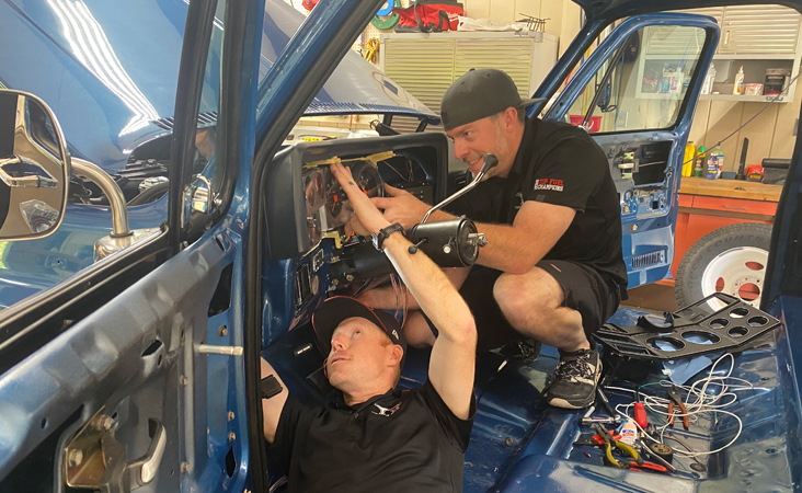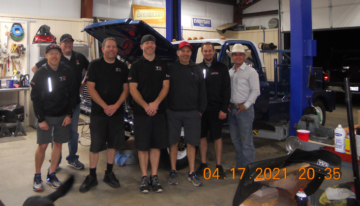 “We got the truck out of the body shop, Humberto's Paint & Body, April 12 and it was it was a just a bare cab with the hood and fenders mounted, so four of the guys from race team -- Justin Crosslin, Kris Martin, Cale Hood, and Mike Giaffino -- came down [from Brownsburg, Ind.] and worked for four days. When they left, everything was wired, plumbed, and the engine fired up and running “