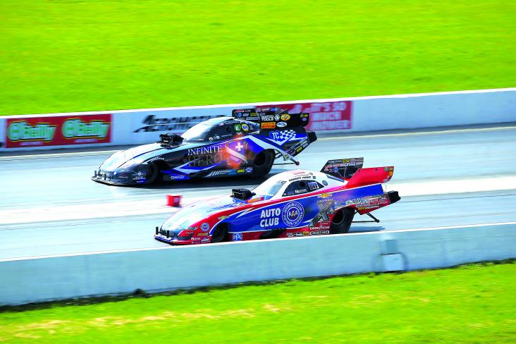 The Auto Club team appeared most threatened at its home track in Pomona. Matt Hagan and Dickie Venables, the biggest rivals of Hight and Prock, put on a late-season surge by winning in Dallas and Las Vegas and earning pole position at Auto Club Raceway at Pomona. Hight struggled during the first three sessions of qualifying before making a great lap in the final qualifying heat.