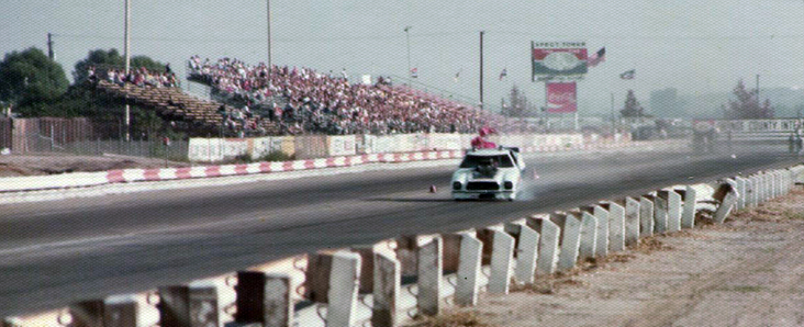 Also from the 1976 Pomona event, this is when I fell in love with Dale Armstrong. In round one of Pro Comp against eventual runner-up Jerry Darien, Armstrong couldn’t get the car out of reverse after the burnout. He cranked the steering wheel hard left and blipped the throttle several times to get the car pointed back to the starting line, then calmly drove it back to the line. He wasn’t allowed to run the round, but the fans loved it! More to love here: The Winternationals banner and the old tower!