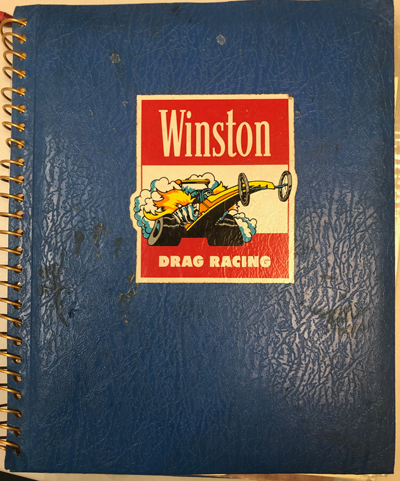 The photos and clipped-out articles from the Los Angeles Times that accompanied them inside no longer stick to the tacky pages under the clear plastic sheeting –- they tumbled out onto the floor when I cracked it open -- but the memories still stick to my brain. And how about that vintage Winston Drag Racing sticker on the cover?