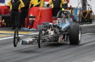 Art Hoover, who previously won the 2012 JEGS Pacific SPORTSnationals, claimed a second win in Top Dragster presented by Vortech Superchargers when he defeated Phil Unruh in the final round. Hoover left almost no room with a .012 light and a 6.603 on his 6.60 dial while Unruh broke out by four-thousandths. Hoover, who kicked off his season with a round two finish in Pomona, locked-up with Moe Trujillo in a tough battle in the quarterfinals where both drivers had .003 reaction times. Hoover won the bout thanks to a 6.577 on his 6.56 dial. A round later, Hoover got a free pass to the final after Steve Will fouled in his quick 6.1-second supercharged dragster. Unruh made it to career final No. 13 after posting wins against Bobby Ray McMahan and Mike MacBrair.