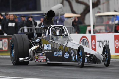 Two years removed from his championship in the Vortech Superchargers Top Dragster series, Paul Nero is still going strong and earned his fourth career win in the class by stopping Chuck Phelps in the final round. Nero gained a sizable lead at the start with a .013 light and held on for the victory with a 6.981 on his 6.97 dial. Nero was remarkably consistent throughout eliminations including a perfect 6.96 on his 6.96 dial in his quarterfinal win against Ed Olpin. Phelps was also solid in the late rounds including a .004 light that helped in his semifinal win against Steve Will’s quick 6.2-second dragster.