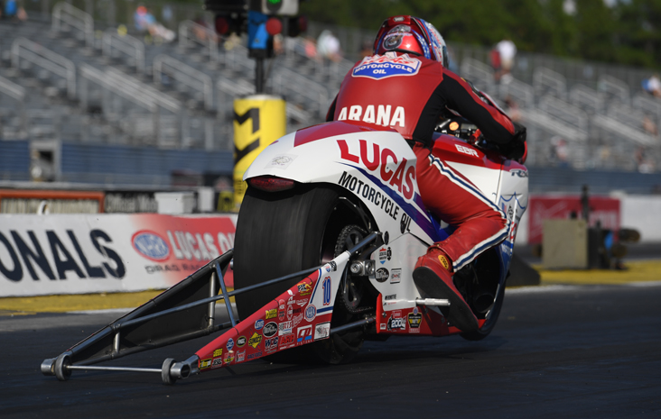 Hector Arana Sr. made his first run of the season in in Pro Stock Motorcycle Gainesville on Friday on his Lucas Oil EBR and qualified solidly for the field with a 13th best 6.942. Arana, who was based in Miami before relocating to Southern Indiana several years ago, qualified for his first Pro Stock Motorcycle race at the 1991 Gatornationals. Coming from the No. 14 spot, he defeated Paul Gast before losing to Tom Wolbers in the quarterfinals.
