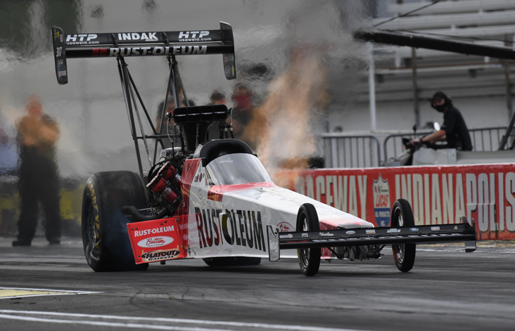 During last weekend’s E3 Spark Plugs NHRA Nationals, T.J. Zizzo found himself in an uncomfortable position during the opening round of Top Fuel eliminations. When opponent Cory McClenathan ran into a mechanical issue that prevented him from staging his Nordic Boats/Revchem dragster in a timely manner, Zizzo’s Rust-Oleum dragster sat at an idle for an inordinate amount of time.