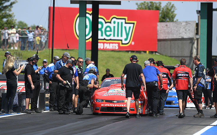 In a typical day, three minutes isn’t much time, but sitting on the starting line behind the wheel of a 1,500-hp Pro Stock car, it can seem like an eternity. That’s approximately how long Bruno Massel and Mason McGaha sat on the starting ling during their epic burndown in Topeka. For starter Brad Hardy, it was simply too long. When repeated attempts to get both drivers to stage were ignored, Hardy disqualified both combatants in one of the most dramatic moments of the season. Neither driver was pleased with the outcome, but it was hard to argue that Pro Stock wasn’t the most talked-about class following that event.