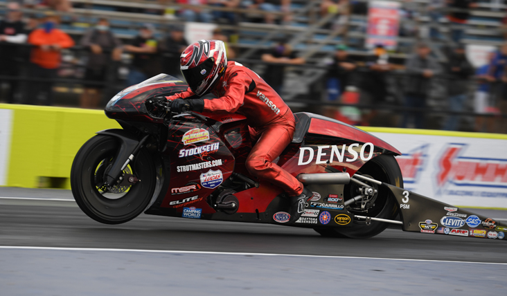Six months ago, Pro Stock Motorcycle champ Smith checked the Gatornationals off his to-do list, and he got an added bonus when he shared the winner’s circle with his father, Rickie, who won in Pro Mod. For the better part of a year, Smith’s Denso EBR has been arguably the best bike in the Pro Stock Motorcycle class, but that might not be the case much longer. The new four-valve cylinder head for the Suzuki engines has shown great promise, and those running it in Gainesville include three-time world champ Angelle Sampey on her new Mission Foods Hayabusa and Reed Motorsports teammates Cory Reed and Joey Gladstone. Smith's own teammates, including his wife, Angie, and Scotty Pollacheck, also won races last year and should be no less competitive this season.