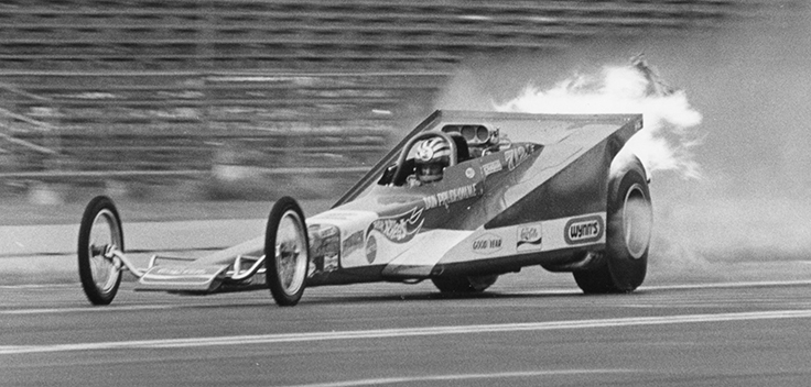 He had been an A/Fuel class winner at the 1965 U.S. Nationals over Donn Griffin in a car, dubbed The Intruder, that he ran with partner Larry Mingee. It had a 301 Chevy running on 20% nitro before moving into a full-fledged Top Fueler in 1966 using a Rod Stuckey chassis and a 364 Chevy.