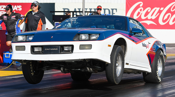 1) Tad Schei, Peori, Ariz., '83 Camaro, GT/MA, 10.398 seconds, -0.802 (under index)