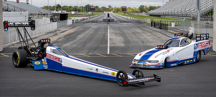 NHRA superstars Matt Hagan and Leah Pruett will help kick off the launch sequence for two new performance-based Dodge programs by carrying special “Direct Connection” graphics on their respective race cars, beginning with today’s qualifying sessions at the Dodge//SRT NHRA Nationals Presented by Pennzoil.