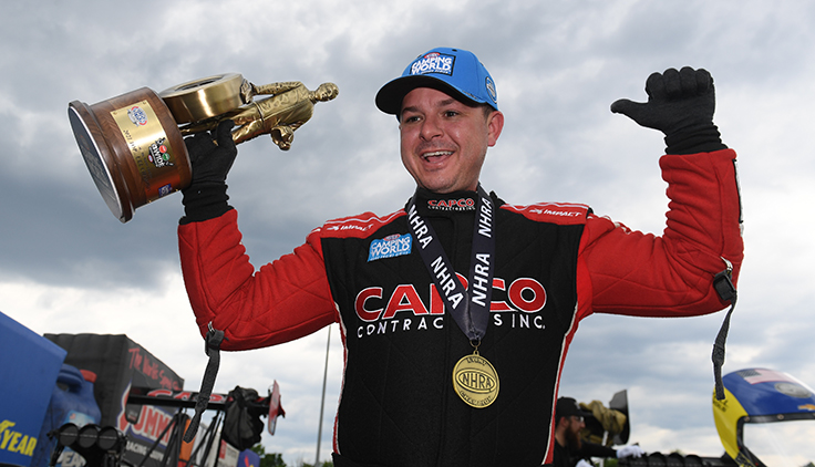 Hagan was just five points behind leader and teammate Ron Capps when he arrived in the Gateway City and he immediately went to work gaining qualifying points. By the end of the weekend, Hagan had won his 38th career national event and perhaps more importantly, he stretched his lead over the rest of the field to 59 points. That’s certainly not insurmountable, but it likely makes for a good night’s rest until the chase resumes in Dallas.