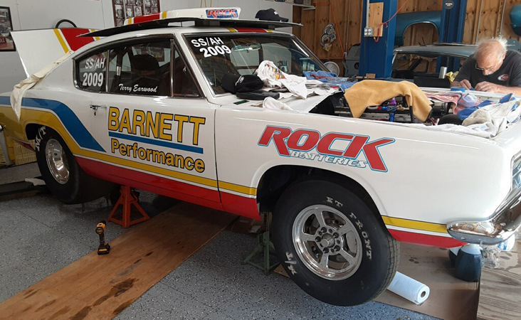 In preparation for his first competitive appearance in his Georgia-based Barracuda, Earwood made a series of test runs at the track two weeks ago that produced a quarter-mile best of 9.14 seconds at 147 mph.