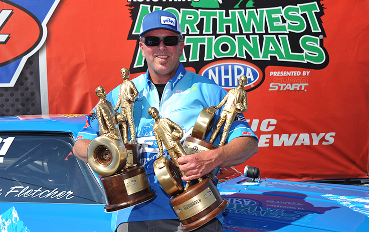 The amazing Mr. Fletcher also swept the Swing for the first time that year, doing it in Super Stock with his vaunted hugger-orange Checkmate Camaro. His 2013 sweep may be more amazing as after winning in Super Stock in Denver and Stock in Sonoma, he won in both classes in Seattle in his first and only double-up victory. Four Wallys in three weeks? Amazing!