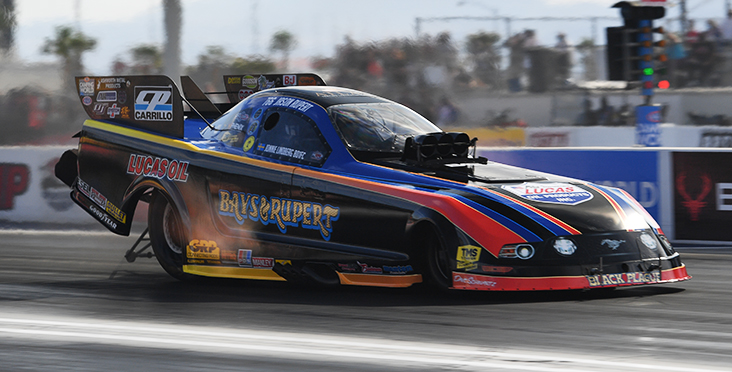 Rupert, a three-time NHRA Hot Rod Heritage Racing Series Nostalgia Funny Car champion and three-time finalist in Top Alcohol Funny Car, made a trio of incremental runs at Auto Club Famoso Raceway during the winter and jumped in for his first attempts at a full pass after Jonnie Lindberg had successfully qualified the Bays & Rupert Ford Mustang during the four-wide event.