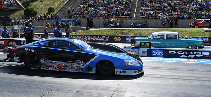 It was certainly improbable, as Lewis didn’t return until mid-July when he made his first-ever appearance at Bandimere Speedway for the Dodge//SRT Mile-High NHRA Nationals. He made a good first impression, too, taking his ’10 GXP to the winner’s circle with a spectacular showing that gave Lewis his first national event win in Top Sportsman in nine years.