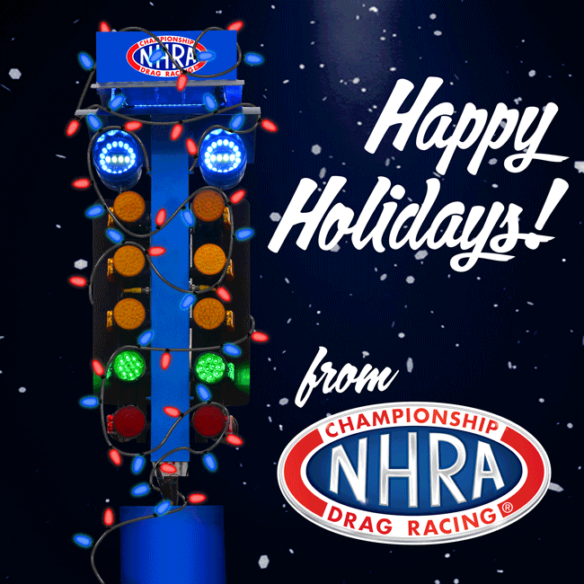 The staff of the NHRA wishes a Merry Christmas and Happy Holidays to the fans, sponsors, race teams, racetracks, and other supporters of the NHRA.
