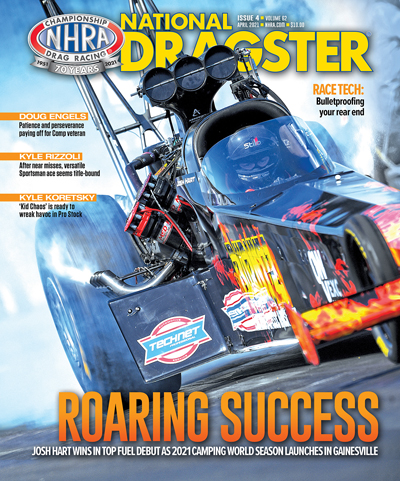 National Dragster’s continuing commitment to Sportsman racers continues inside with in-depth features on Comp racer Doug Engels and dual-threat Kyle Rizzoli, and we also trace the Sportsman-launched path of current Pro Stock rising star Kyle Koretsky.