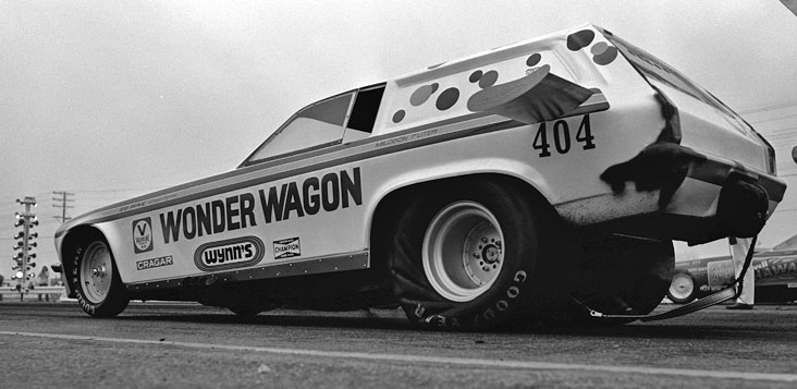 But even conventional Funny Cars had their challenges. Corvette bodies initially were considered jinxed until McEwen found the correct rear-wing configuration and they became popular. There was no saving the reputation of the Chevy Vega panel wagon, as I detailed in a couple of stories chronicling the wild nature of Don Schumacher’s Wonder Wagon Funny Cars of the early 1970s. As intriguing and different as they looked, no amount of canards or body alterations could keep them from trying to take flight at the top end.