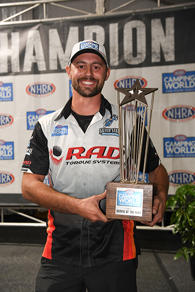 The award recognizes the top rookie competitor in the NHRA Camping World Drag Racing Series. The nation’s leading auto racing journalists select the winner through a voting system based on the following criteria: number of events competed in, performance on and off the racetrack, participation in NHRA promotions, and relationships with fans, sponsors, and media.
