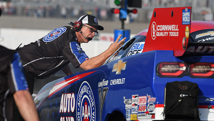 He was in second place and hasn’t seen that perch since, sliding as low as ninth but hovering around the middle of the Top 10 thanks to wins in Houston and Sonoma. Then the proverbial wheels fell off the Auto Club Chevy in the summer, losing in the first or second round at six of the next seven events.
