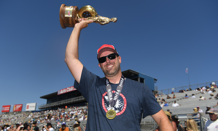 For all the great driving that Cobb did in Sunday’s semifinal and final rounds, his first victory will long be remembered for how it ended; with a low-speed trip into the Auto Club Raceway sand trap. Once Cobb saw his win light on, the celebration began, and he simply didn’t get slowed down enough to make the corner. Fortunately, the unplanned excursion didn’t hurt the car and Cobb even helped the NHRA Safety Safari crew push the car back onto the return road.