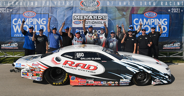 After initial success and a win in his fourth career start, Glenn parlayed that into a full-season sponsorship with RAD Torque Systems and he kept rolling, adding two more victories, the NHRA Rookie of the Year and an impressive third-place finish in the loaded Pro Stock class.