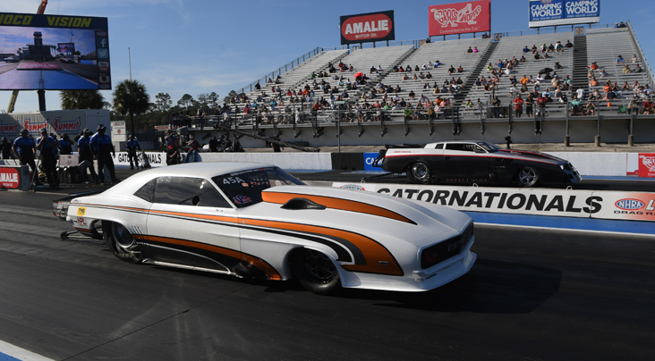 The elapsed time record in Pro Mod traded hand several times this weekend. Coming into the Amalie Gatornationals, the record was a 5.643 set by “Stevie Fast” Jackson at the 2019 Amalie Gatornationals. During Saturday evening’s wild final qualifying session, Canadian Justin Bond drove his ProCharger-equipped Bahrain1 Camaro to a 5.638 to re-set the record. Bond didn’t have long to celebrate since Pro Mod cars returned to the track for their first round of eliminations on Sunday morning where Jose Gonzalez drove his new Q80 Camaro to a 5.621 in his win over Jericho Balduf to take the record, albeit unofficially. Gonzalez also uses the ProCharger engine combination offered by ProLine Racing.