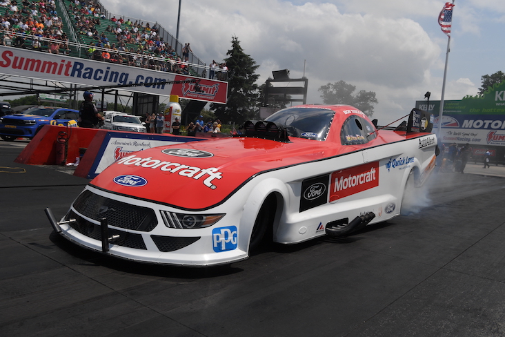 Racing resumed just before 6 p.m. ET at Norwalk and Brittany Force promptly made history at Summit Racing Equipment Motorsports Park. Force became the first driver at Norwalk to run in the 3.60s, wowing those who stuck around with an incredible pass of 3.696 at 326.09 to advance to the final round.