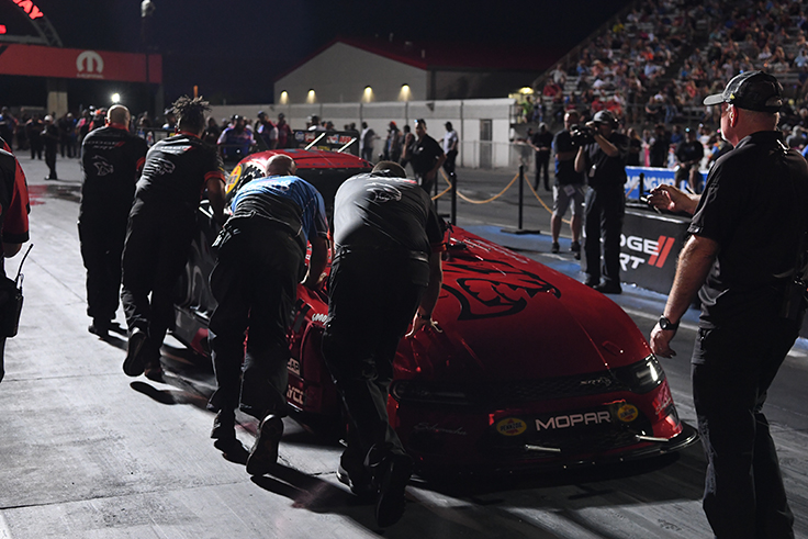 Tommy Johnson Jr. is used to pressure. He’s been driving nitro cars since the late 1980s and been in the thick of numerous championship battles, but the popular Iowa transplant felt a whole different kind of pressure Friday at Lucas Oil Raceway at Indianapolis when he was called in at the last minute to replace Don Schumacher Racing teammate Matt Hagan –- the points leader --- who had just tested positive for COVID-19, at their sponsor Mopar's biggest race of the season.