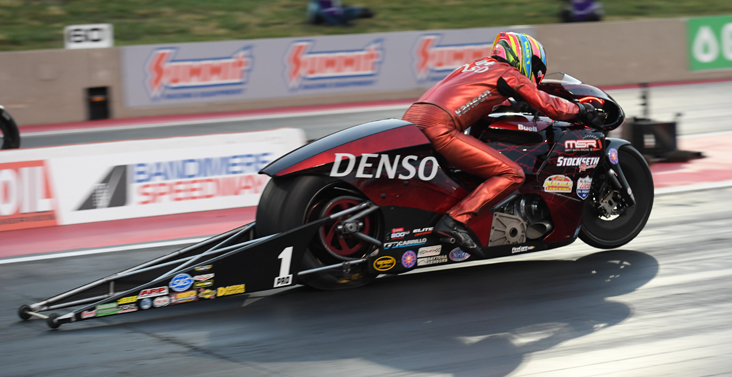 Is it too early to start talking about a Western Swing sweep? Not when this guy (or Steve Torrence) is in the mix. We’ve said it often; that this is the best bike/rider combination in the class right now and he proved it again in Denver. It won’t be easy and the competition is gaining ground but we’d say he’s nearly a lock to go 2-for-3 on the swing and a sweep is not out of the question.