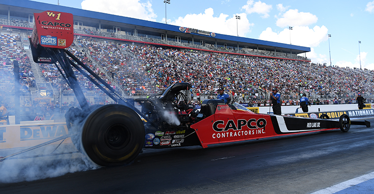 While he lost the Dallas final a week ago the end result is that he extended his lead and now has a healthy, if not insurmountable 52 point lead as he pursues his third-straight Top Fuel title. No need for a big strategy change here. The Capco team just needs to keep doing what they’ve been doing all season.