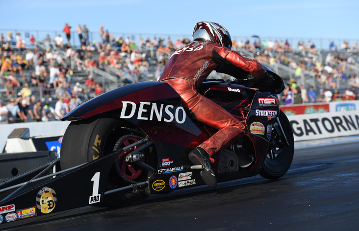 Gainesville wasn’t bad and Las Vegas was slightly better with a semifinal finish in the Denso Four Wide Nationals. Actually, that semifinal could have or should have been even better if not for a pesky red light. The competition in the Pro Stock Motorcycle class is as good as it’s ever been right now, and this guy is one of the reasons for that.
