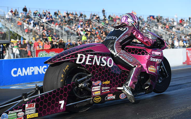 “One hundred percent, this is the best bike and the best year I’ve ever had, and I’ve learned a lot,” Smith said. “But drag racing is a humbling sport, and that’s why every lap counts. You have to put your best foot forward and make the best run possible, try to make it perfect and then you will have a shot. I feel confident going into this race that we’re going to keep making those good runs, but you have to be perfect in the Countdown, and I have to be focused on what I’m doing.”