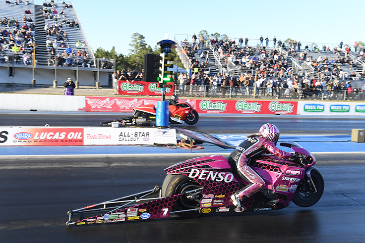 Following her Gainesville performance, Smith would like nothing more than to go racing again, but the Pro Stock Motorcycle class doesn’t rejoin the Camping World NHRA tour until the NHRA SpringNationals in Houston, still a month away. The Smith’s plan to use that time wisely, but that doesn’t necessarily mean an extended test session.