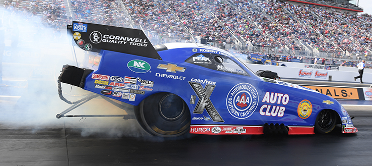 John Force Racing will have a pair of entries in the final round after Robert Hight and John Force finished 1-2 ahead of Bob Tasca III and Cruz Pedregon. Hight, Force, and Tasca all ran in the threes after Pedregon smoked the tires.