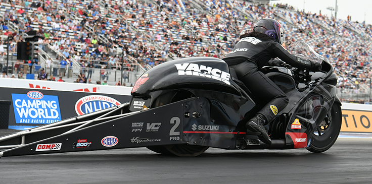 "This wasn't just for me; it meant a lot for the team. They work so hard every day, and Andrew [Hines] sacrificed his ride on the motorcycle to be my full-time crew chief. This was a way of saying 'thank you' to him. He gives me a motorcycle capable of qualifying No. 1, winning the race, and setting the world record – but I have to drive it. I want to perform that well more often, but you have to be as close to perfect as possible, and that's not easy."